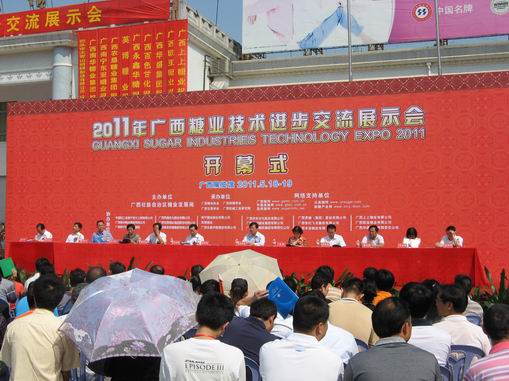 2011年5月18-19日,廣西首屆糖業(yè)技術進步交流展示會(簡稱“糖業(yè)技術展示會”)在南寧舉行。該展示會由廣西壯族自治區(qū)糖業(yè)發(fā)展局主辦,廣西糖業(yè)協會、廣西制糖學會、廣西甘蔗學會和廣西機械工業(yè)研究院共同承辦。參加糖業(yè)技術展示會的單位有:廣西壯族自治區(qū)工信委、農業(yè)廳、農機局等區(qū)直單位;廣西區(qū)內主產糖市糖業(yè)發(fā)展局(糖辦);廣西區(qū)內制糖企業(yè);國內外參展企業(yè);中國糖業(yè)協會和廣東、云南、海南三省糖業(yè)協會等。到會領導主要有中國農業(yè)科學院甘蔗研究中心主任李楊瑞、中國糖業(yè)協會副理事長兼秘書長閆衛(wèi)民、廣西糖業(yè)發(fā)展局副局長劉全躍、張魯賓等。會議規(guī)模500多人,是廣西糖業(yè)發(fā)展上規(guī)模最大的一次盛會。