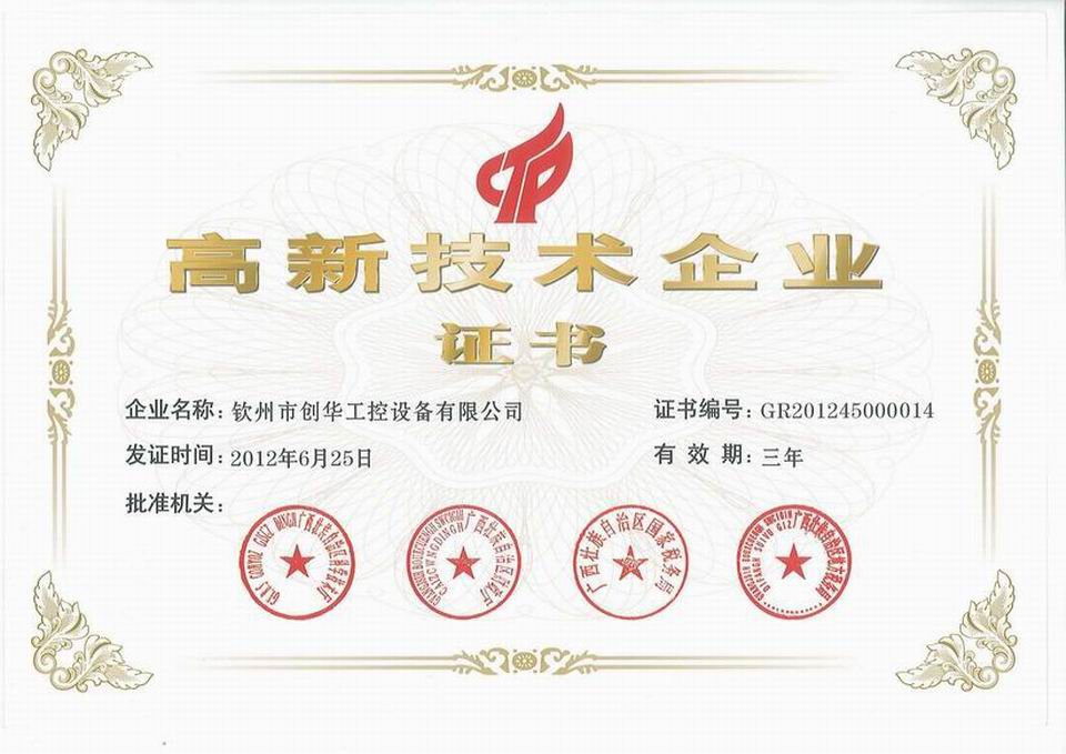 “創(chuàng)華工控”榮獲高新技術(shù)企業(yè)認(rèn)定