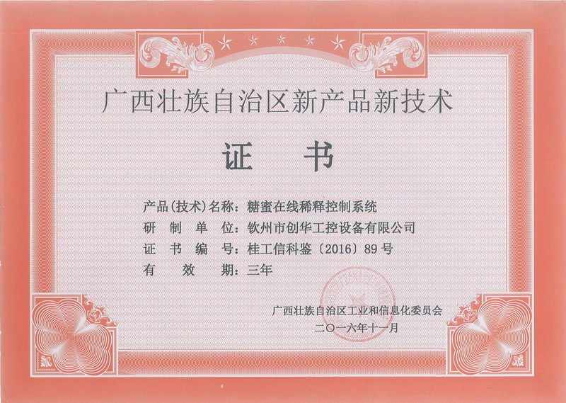 糖蜜在線稀釋系統(tǒng)獲新產(chǎn)品新技術(shù)證書(shū)